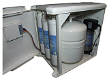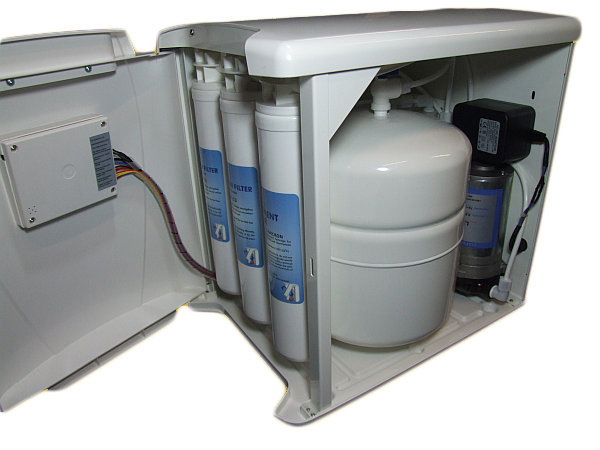 pressure through a series of 5 filters. The clever arrangement of carbon filters remove organic contaminants and